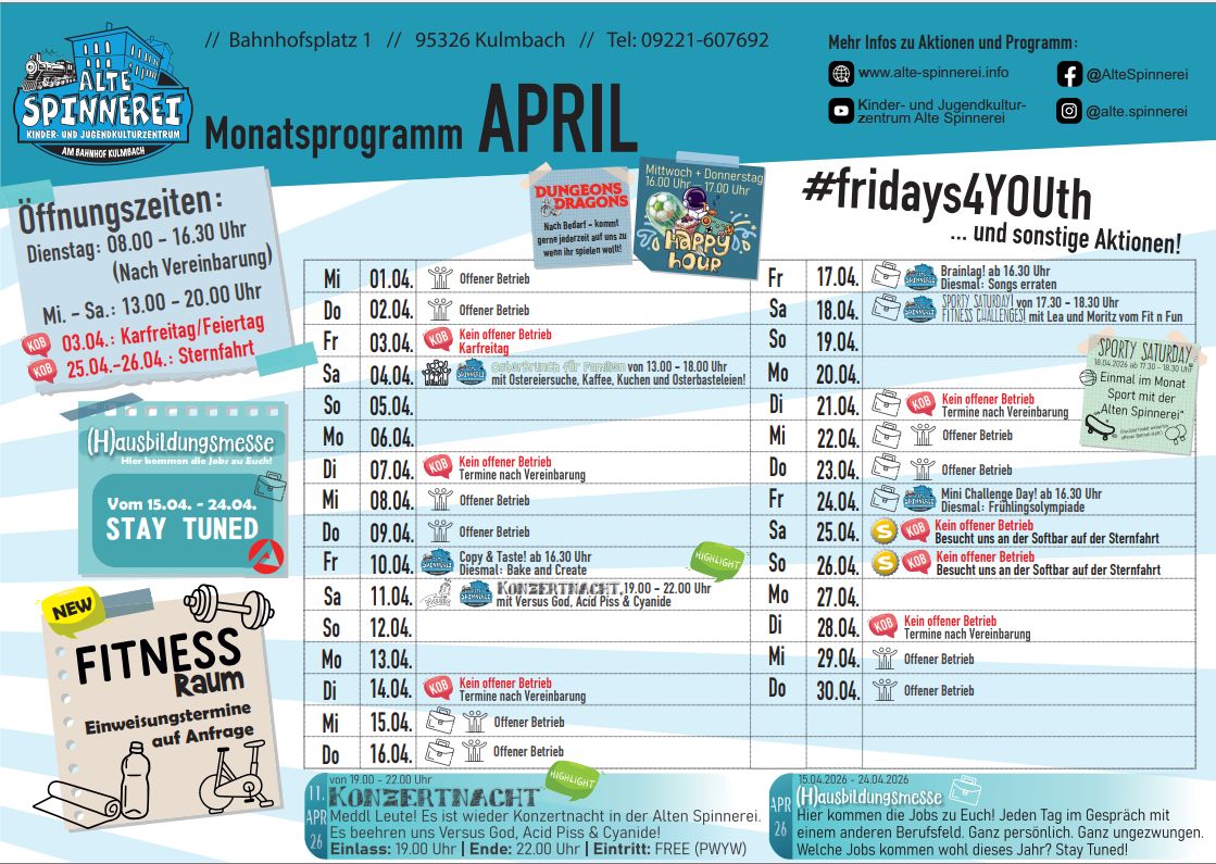 Programm der "Alten Spinnerei" Kulmbach: