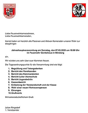 Jahreshauptversammlung der Freiw. Feuerwehr Wirsberg